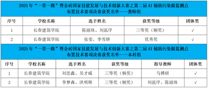 近日,2025年“一带一路”暨金砖国家技能发展与技术创新大赛之第二届AI辅助污染源监测点布置技术赛项全国总决赛顺利举办。学校城建学院经过严格预选,共派出教师团队2支(4人)、学生团队2支(4人)参赛,与来自全国高校的160余名师生同台竞技。学校参赛团队凭借出色的表现和过硬的综合实力,在本届大赛中荣获教师组赛项三等奖1项、优秀奖1项,本科组赛项三等奖2项。